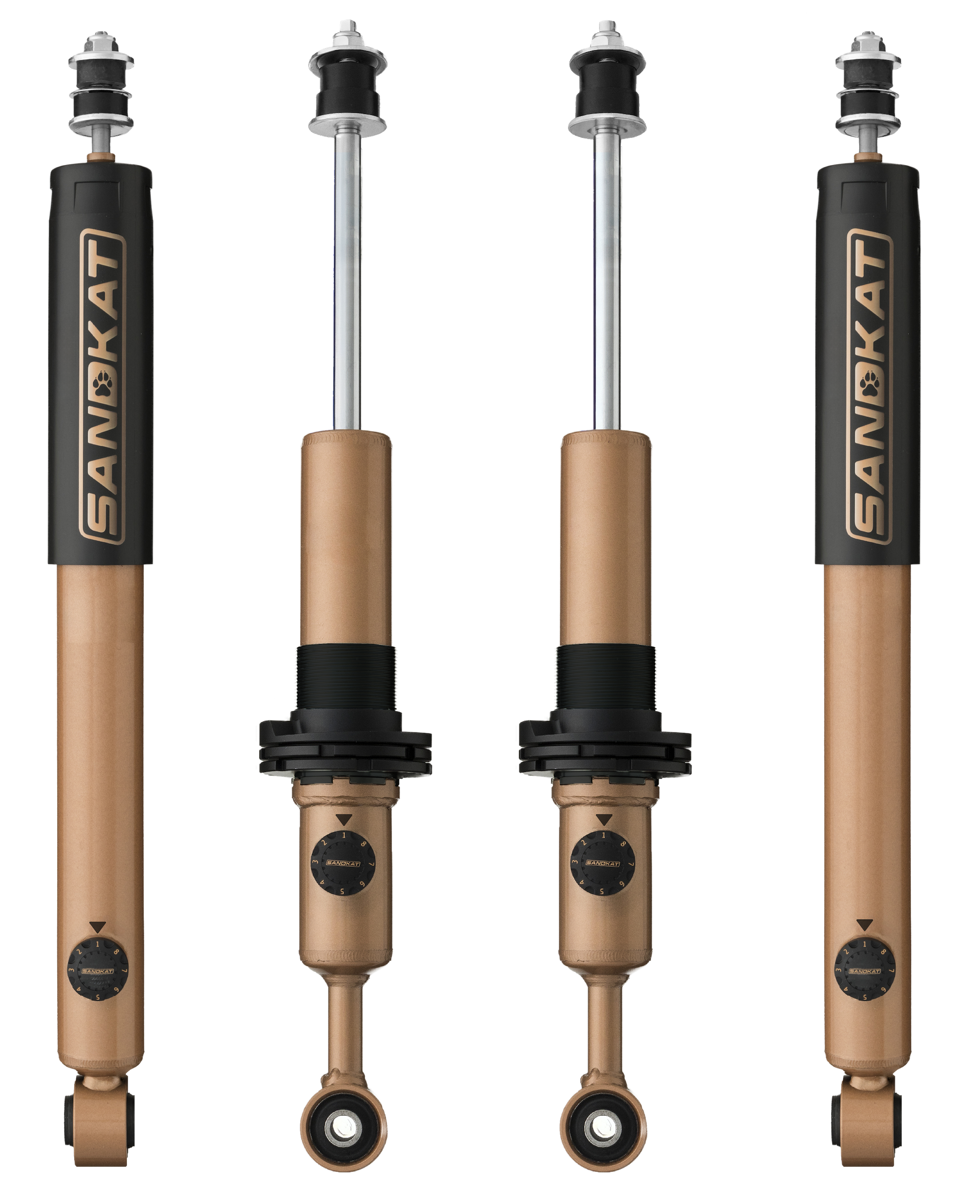 Sandkat 8-stage adjustable shocks deliver precise control for on- and off-road driving. With eight dampening settings, they allow you to fine-tune ride comfort and handling. Built from high-quality materials, these shocks enhance stability, absorb bumps efficiently, and improve traction, ensuring the ultimate offroad experience with performance you can trust